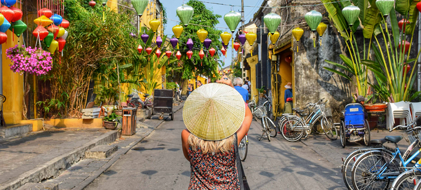 We'll ride two wheels through the rice paddies before boarding a local row boat through the network of waterways and caverns to explore the countryside retreat of Ninh Binh. We'll end our stay with a sunset walk to the Dragon Mountain viewpoint before boarding our nighttime train to Hoi An.