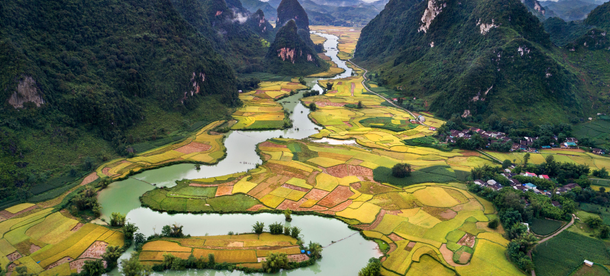 Today, we'll visit Ninh Binh's rice farms and enormous limestone mountains, where we'll stay at a local homestay in traditional bungalows right on the river.